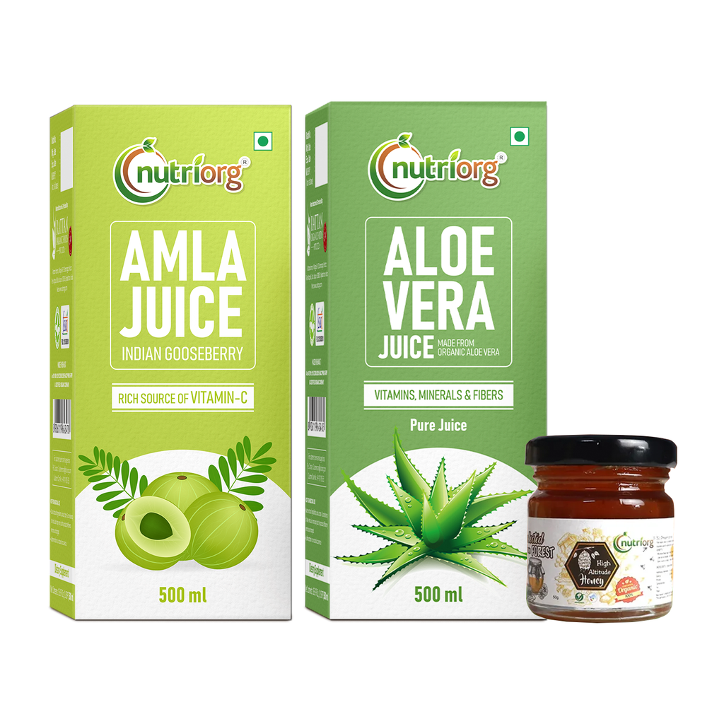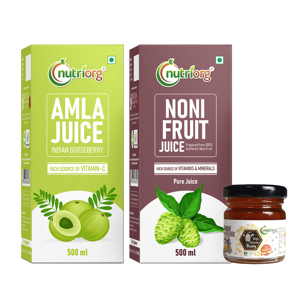 Vitamin C Health Booster Combo (Amla Juice 500ml, Noni Juice 500ml, Free Honey 50g)