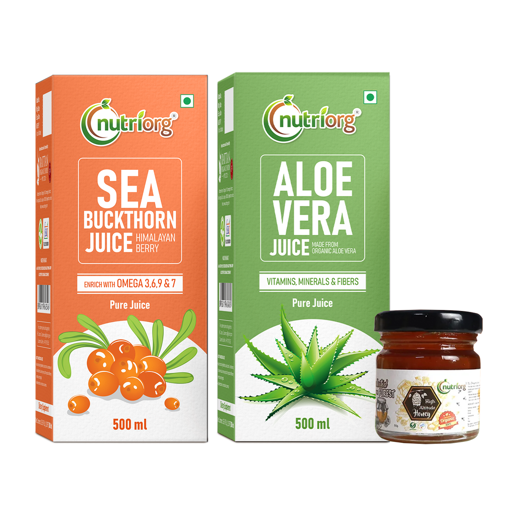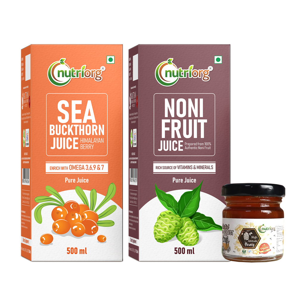 Vitamin C Health Booster Combo (Sea buckthorn Juice 500ml, Noni Juice 500ml, Free Honey 50gm)
