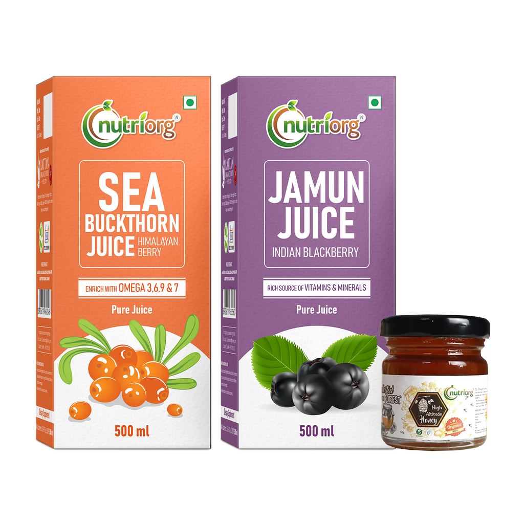 Electrolyte Booster Combo (Seabuckthorn Juice 500ml, Jamun Juice 500ml, Free Honey 50gm)