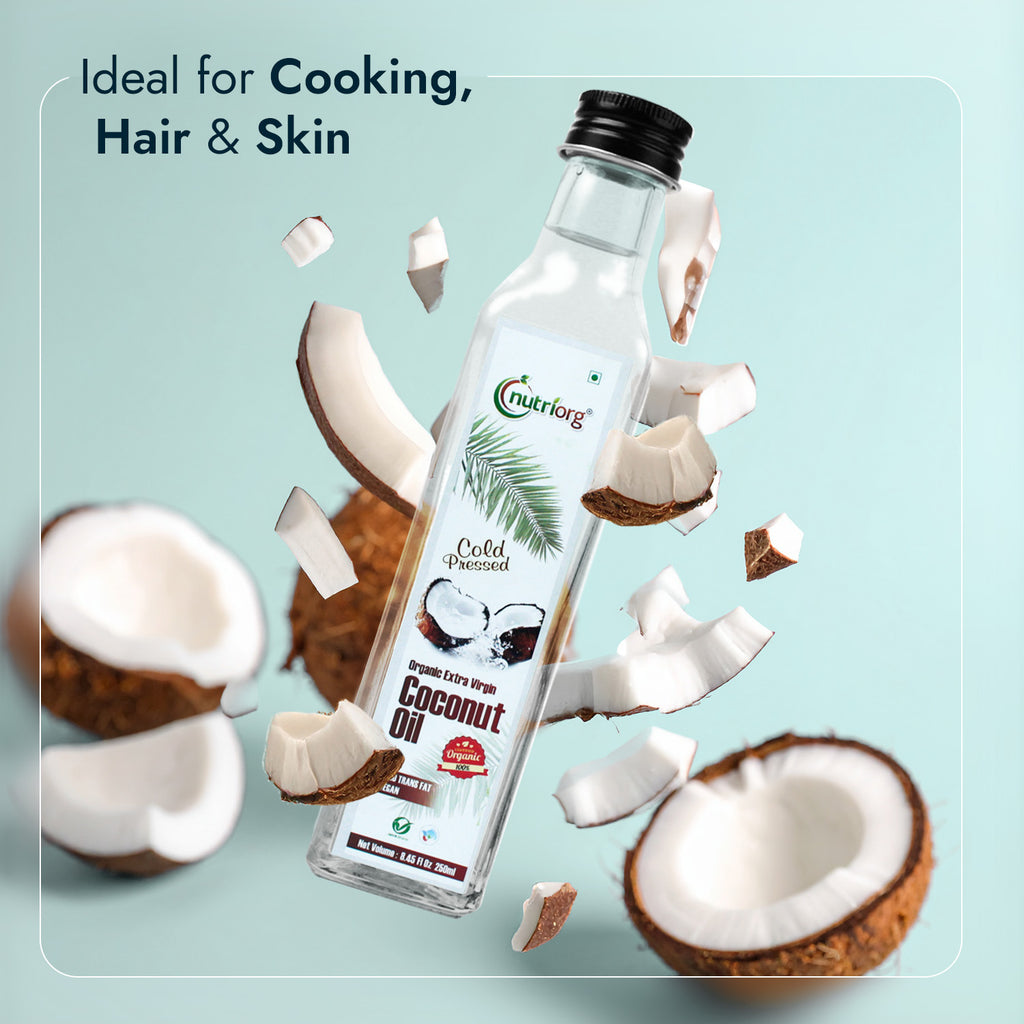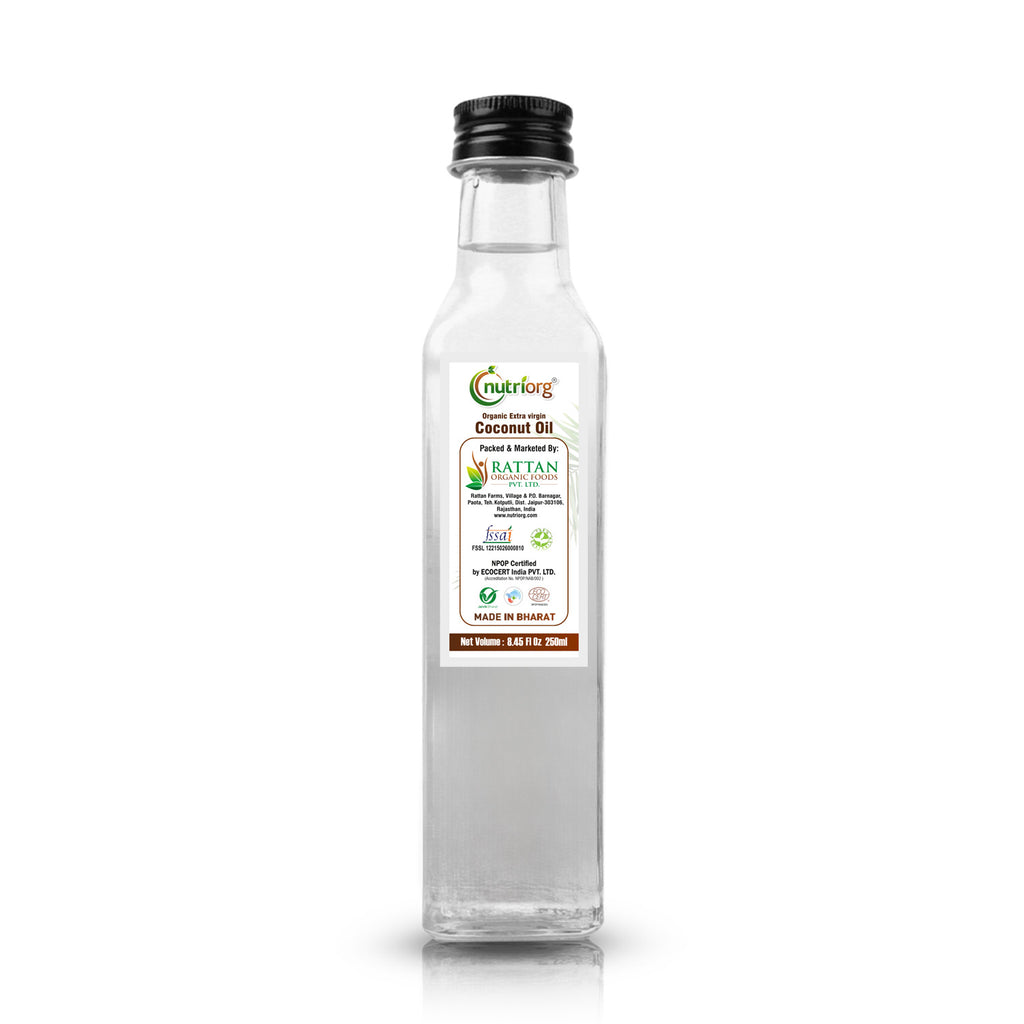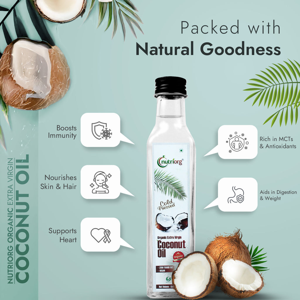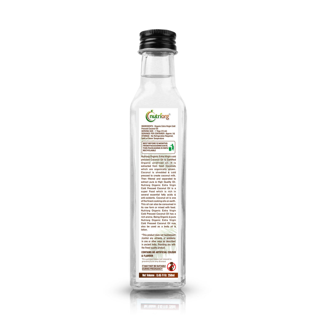Nutriorg Certified Organic Extra Virgin Coconut Oil 250 ml | Wooden Cold-Pressed Oil