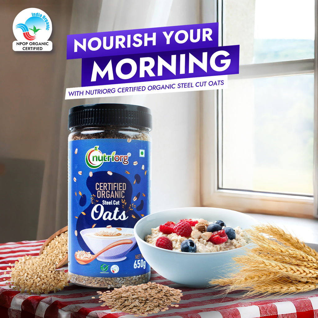 Nutriorg Organic Instant Oats 400g with Organic Steelcut Oats 650g (Combo of 2)