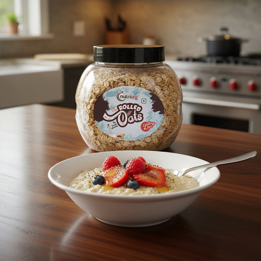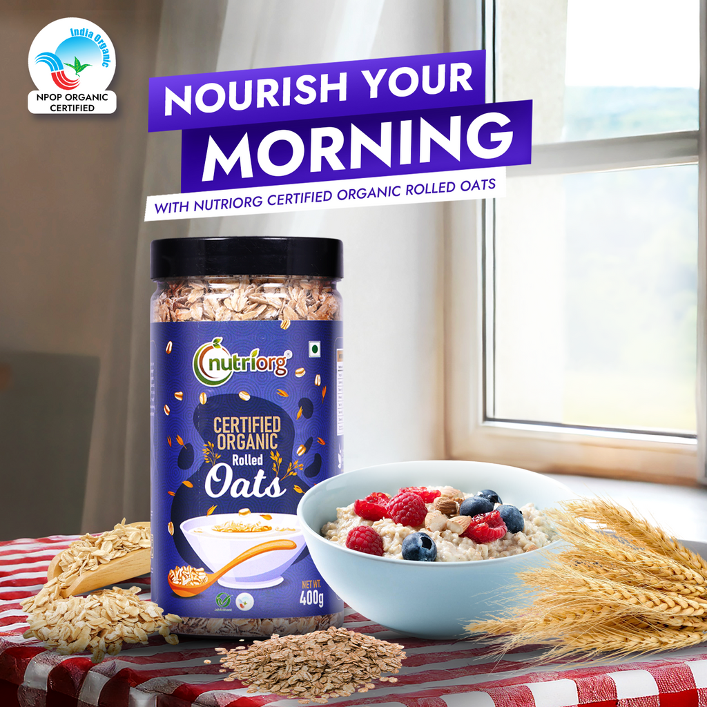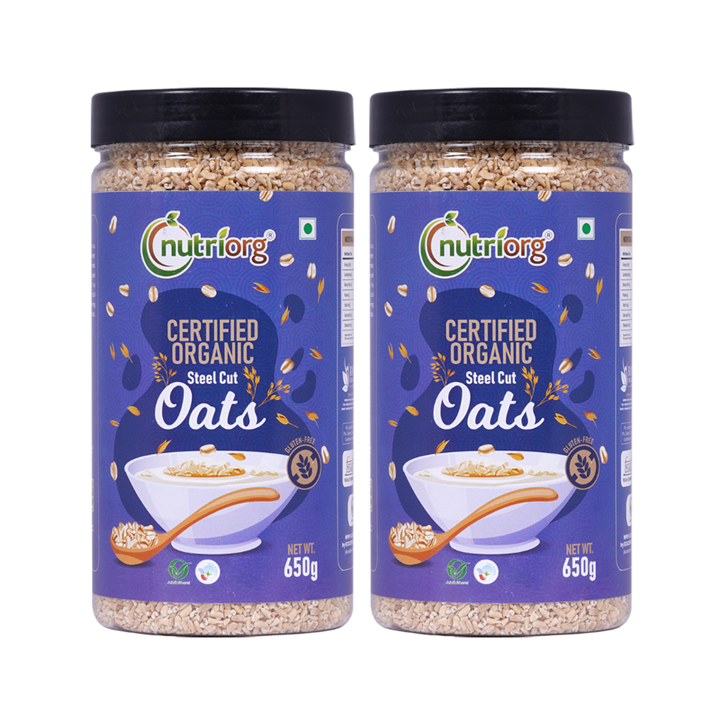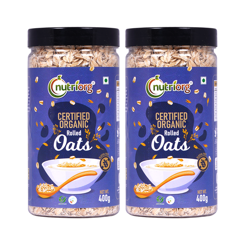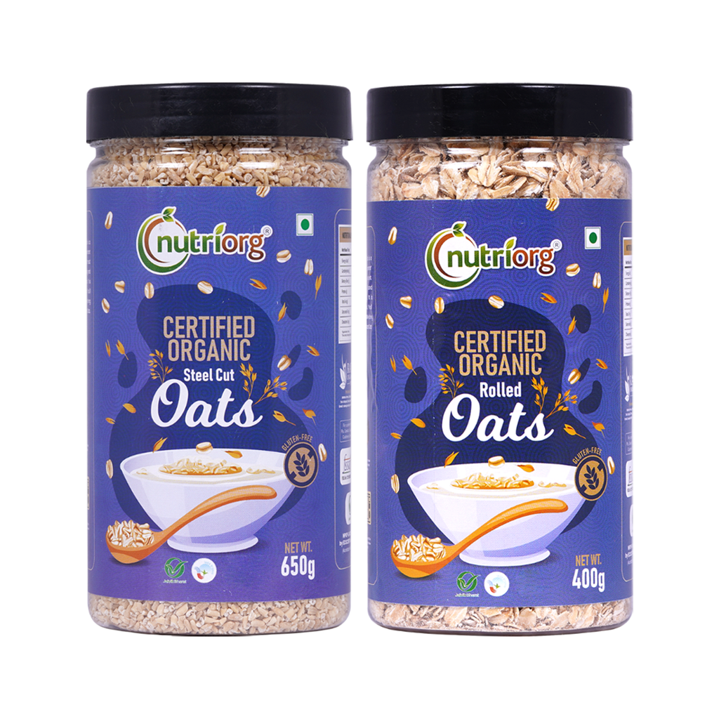 Nutriorg Organic Rolled Oats 400g with Organic Steelcut Oats 650g (Combo of 2)