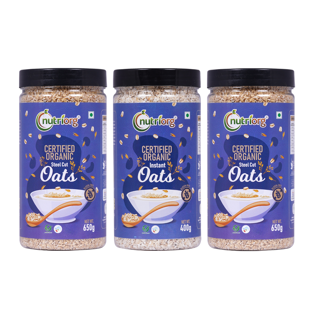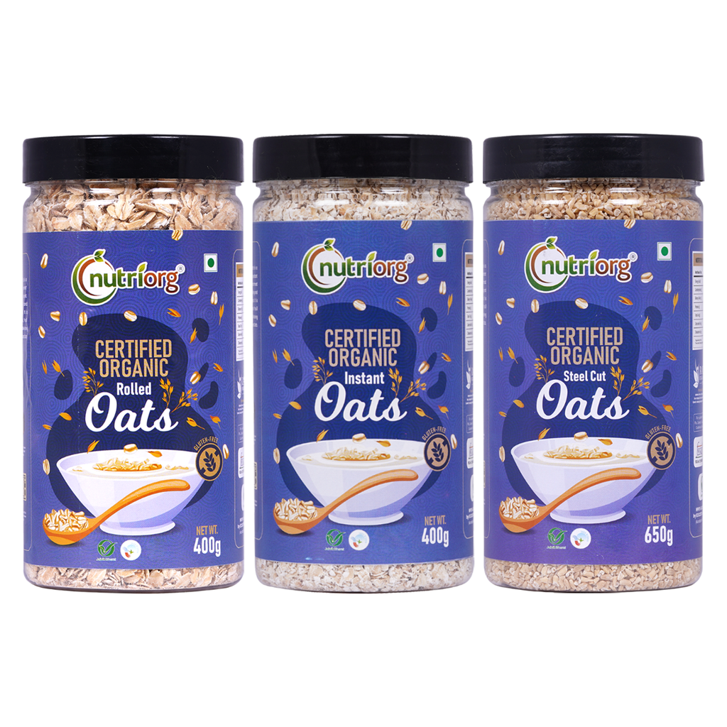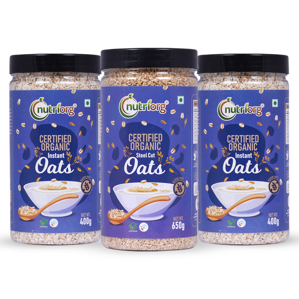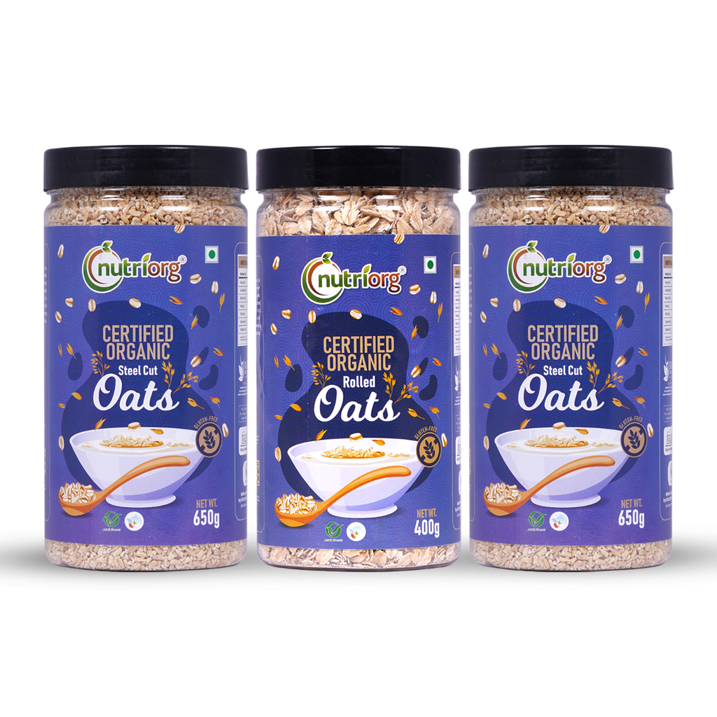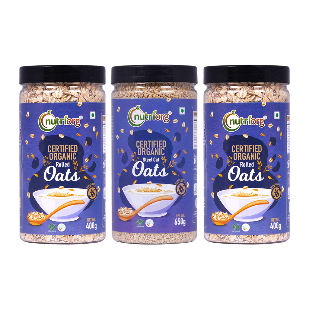 Nutriorg Organic Rolled Oats 400g, Instant Oats 400g and Steelcut Oats 650g (Combo of 3)