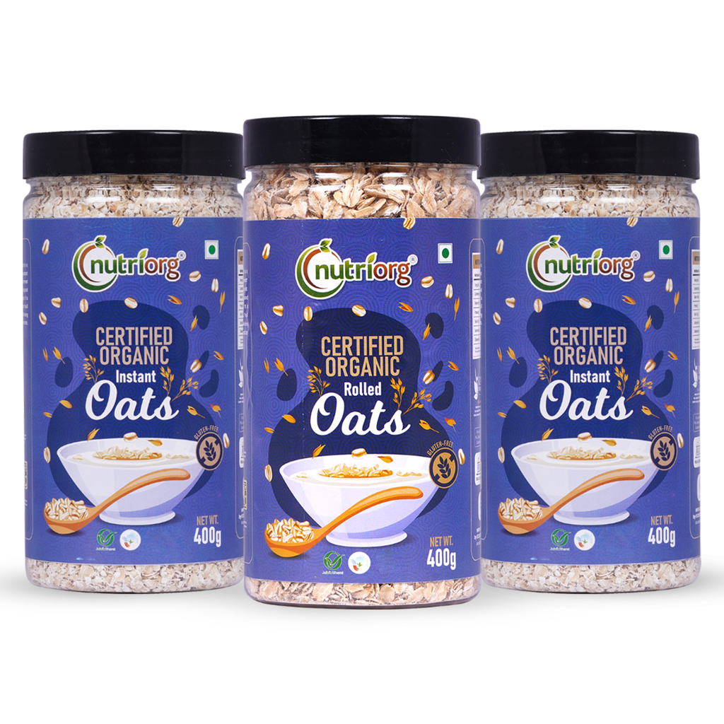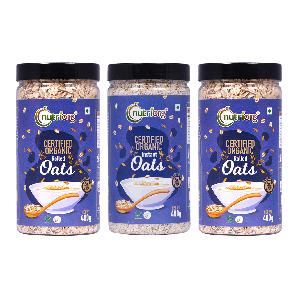 Nutriorg Organic Rolled Oats 400g*2 with Organic Instant Oats 400g (Combo of 3)
