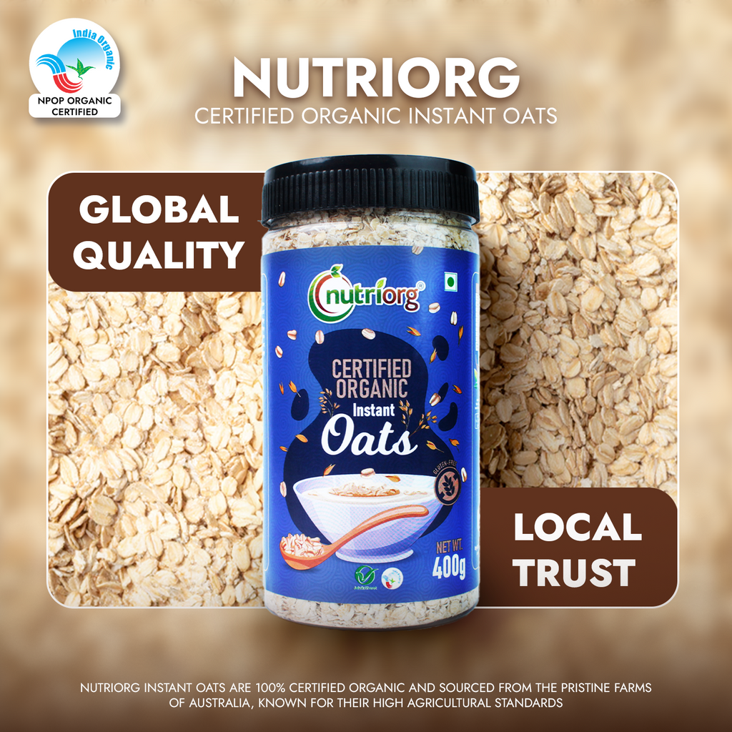 Elevate your daily nutrition with the Nutriorg Organic Instant Oats (400g*2) paired with Organic Steelcut Oats (650g) - a harmonious blend of convenience and wholesomeness in one value-packed combo. Embrace the benefits of two distinct oat varieties, catering to both time-efficient needs and a desire for nutrient-rich sustenance.