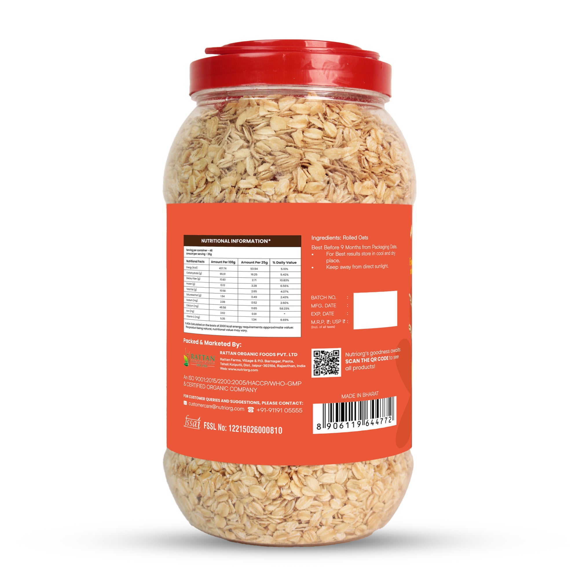 - The Nutriorg Gluten Free Rolled Oats are protein-packed, full of fiber and low on fat.