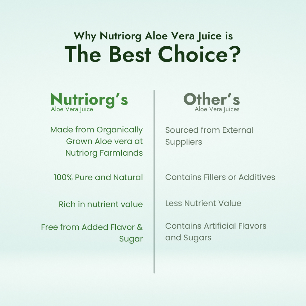Nutriorg Amla Juice is made from Organic Amla which is cultivated in company own certified organic farmland situated in Rajasthan. Nutriorg Amla Juice is 100% pure and unadultered. Amla is the richest source of vitamin-C. It enhances immunity, good for eyes,skin,hair. It also helps in improving the efficacy of others vitamins in the body. Amla is also known to improve vitality. Amla is considered the most powerful herb to manage overall health and well being. According to the ancient science of Ayurveda, regular consumption of amla balances all three doshas, namely, Vata, Pitta and Kapha. Its cooling properties balance both Vata and Pitta whereas its drying properties have a balancing effect of Kaphadosha. Amla is used for promoting longevity, improving digestion, health, stimulating the hair growth, enhancing concentration and memory. Amla is a rich source of Vitamin C, it is considered to contain 20 times more Vitamin C than oranges. It is also rich in proteins and fibers. It contains minerals such as Iron, Calcium and Phosphorous besides Vitamin A and C. Aloe Vera is a multifaceted medicinal plant. The plethora of values and qualities that an Aloe Vera plant possesses can remotely be compared to any other plant or herb. In the world of Ayurveda it has earned the title of the silent healer and finds numerous mentions in the Ramayana, the Bible and the Vedas.