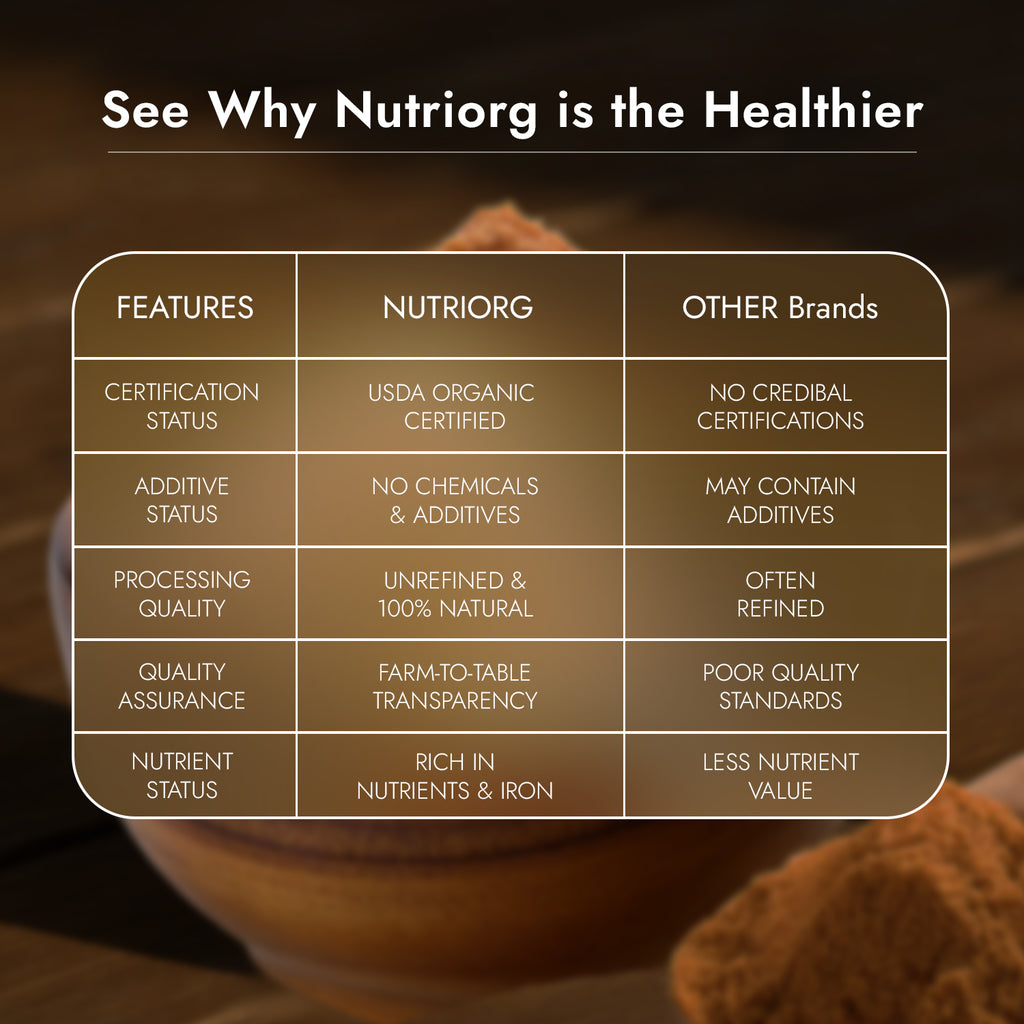 - Nutriorg brings to you the best & traditionally made USDA Certified organic Jaggery. It is extracted from organically manufactured Jaggery in the floodplains of river Ganga.