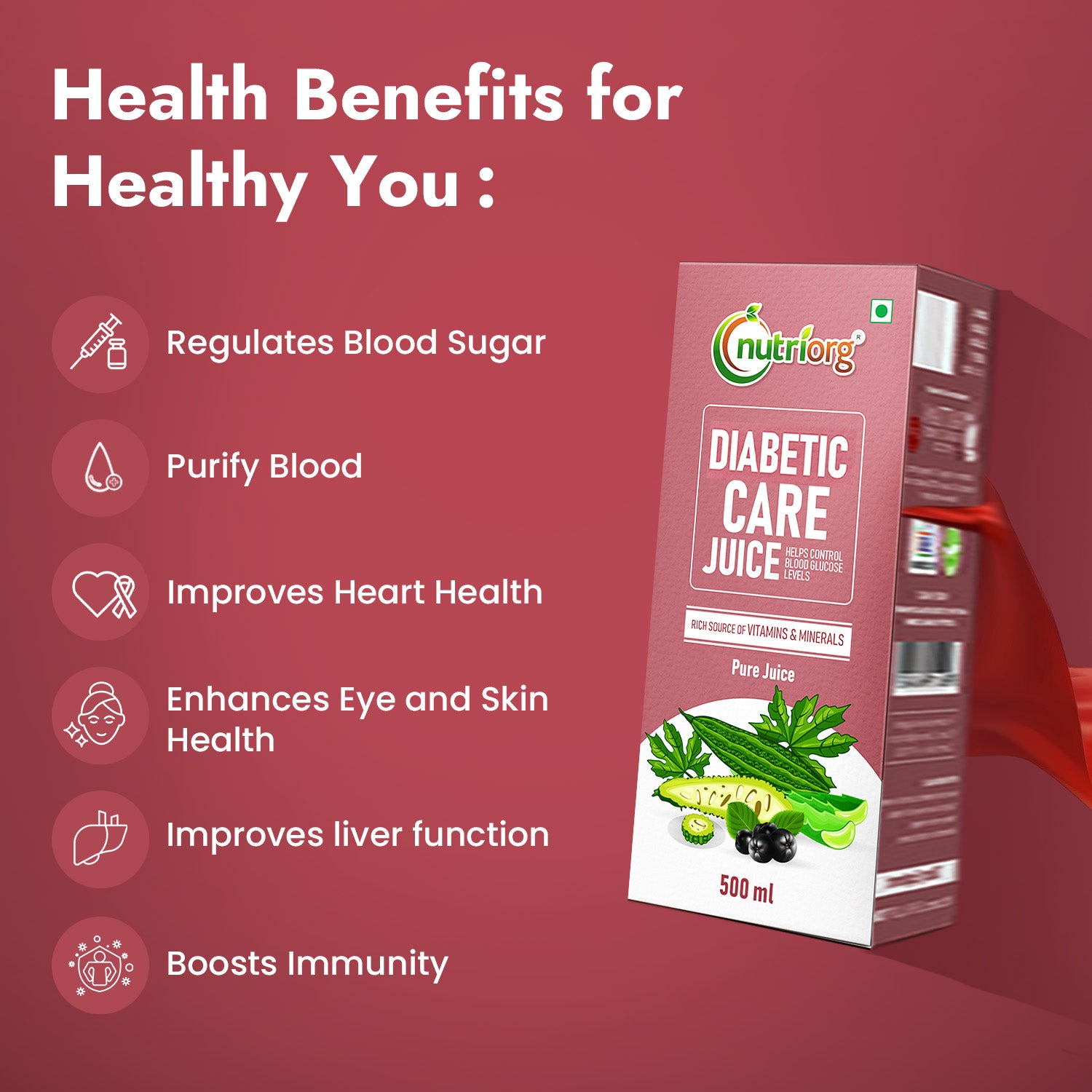 Nutriorg Jamun Juice (Indian Black plum) is extracted from organic Jamun collected from forests located near Madhya Pradesh and Maharashtra. Nutriorg Jamun Juice is extremely effective for keeping sugar levels in the body in check. It helps to convert starch into energy. The black plum has many vital nutrients. The black plum works towards converting sugar into energy. The fruit is good for the digestive system because of its coolant features.