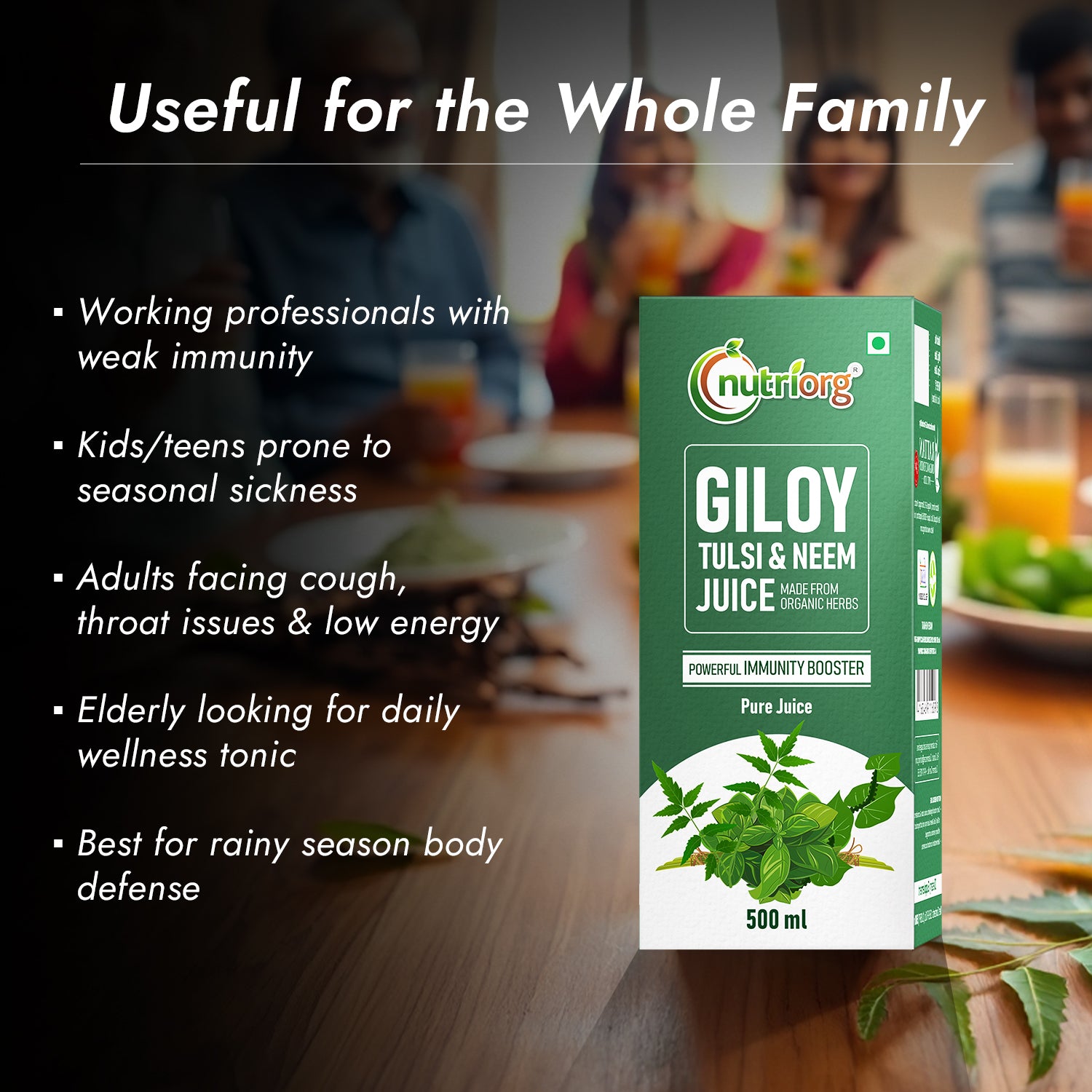 Stay healthy, energized, and rejuvenated with Nutriorg Giloy Tulsi Neem Juice - your perfect companion for maintaining wellness on the move!