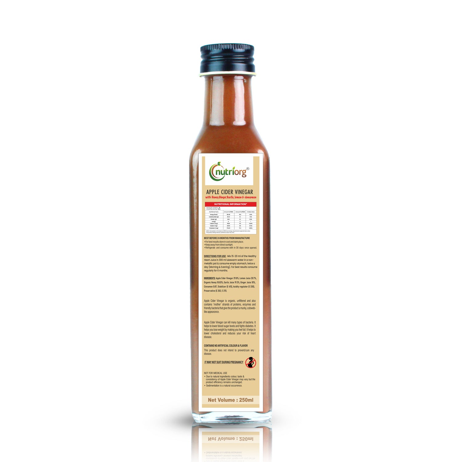 Nutriorg Healthy Heart Apple Cider Vinegar is a unique formulation of Apple Cider Vinegar with honey, ginger, garlic, lemon, and cinnamon. This concoction of ingredients is a very strategic mix as the ingredients were all used since time immemorial for improving cholesterol levels in the body. They were used to cut the stubborn cholesterol that would later lead to various bodily problems. This formula contains 5 traditional organic herbs which work in synergy with Heart Health. Nutriorg’s Healthy Heart Apple Cider Vinegar improves heart and overall health.