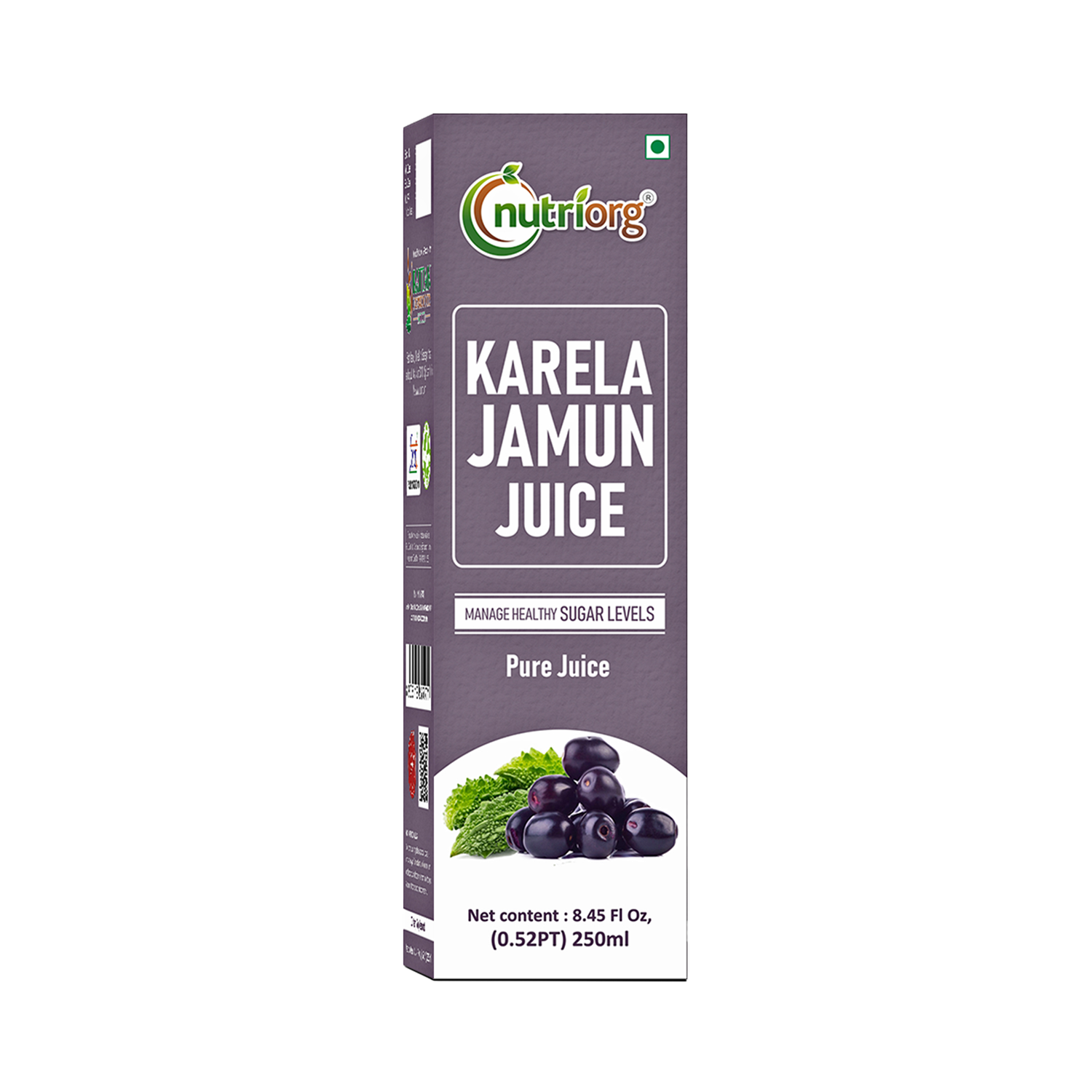Discover the natural health benefits of Nutriorg Karela Jamun Juice, a potent blend of bitter gourd (karela) and Indian blackberry (jamun) extracts. Known for their rich nutritional profiles and antioxidant properties, this juice is a popular choice for supporting blood sugar regulation and overall well-being.