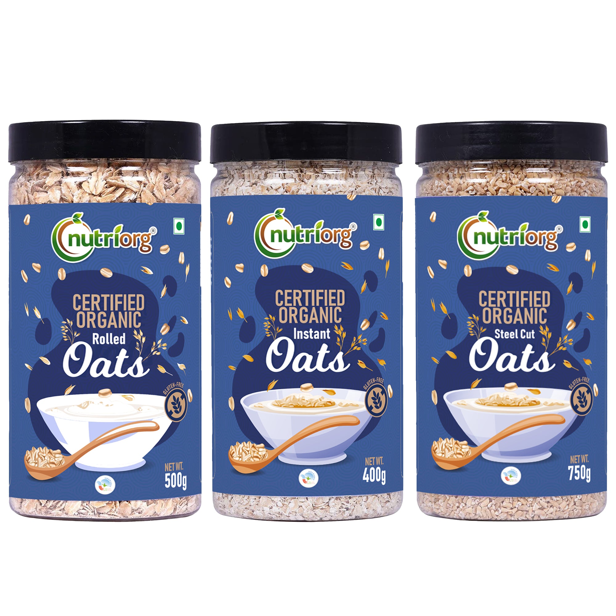 Embrace the Nutriorg Organic Rolled Oats, Instant Oats and Organic Steelcut Oats combo for a diverse oat experience that caters to your nutritional preferences. Elevate your breakfast choices and enrich your health journey with the goodness of oats.