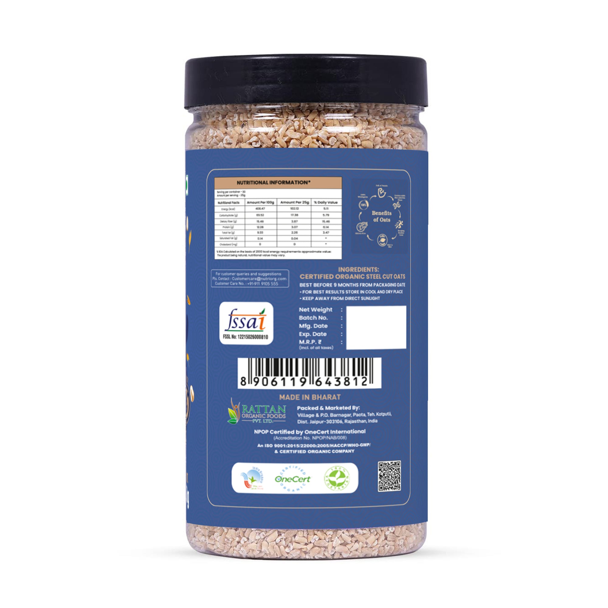 Long-lasting Energy: Steelcut oats provide sustained energy release, ideal for maintaining vitality.