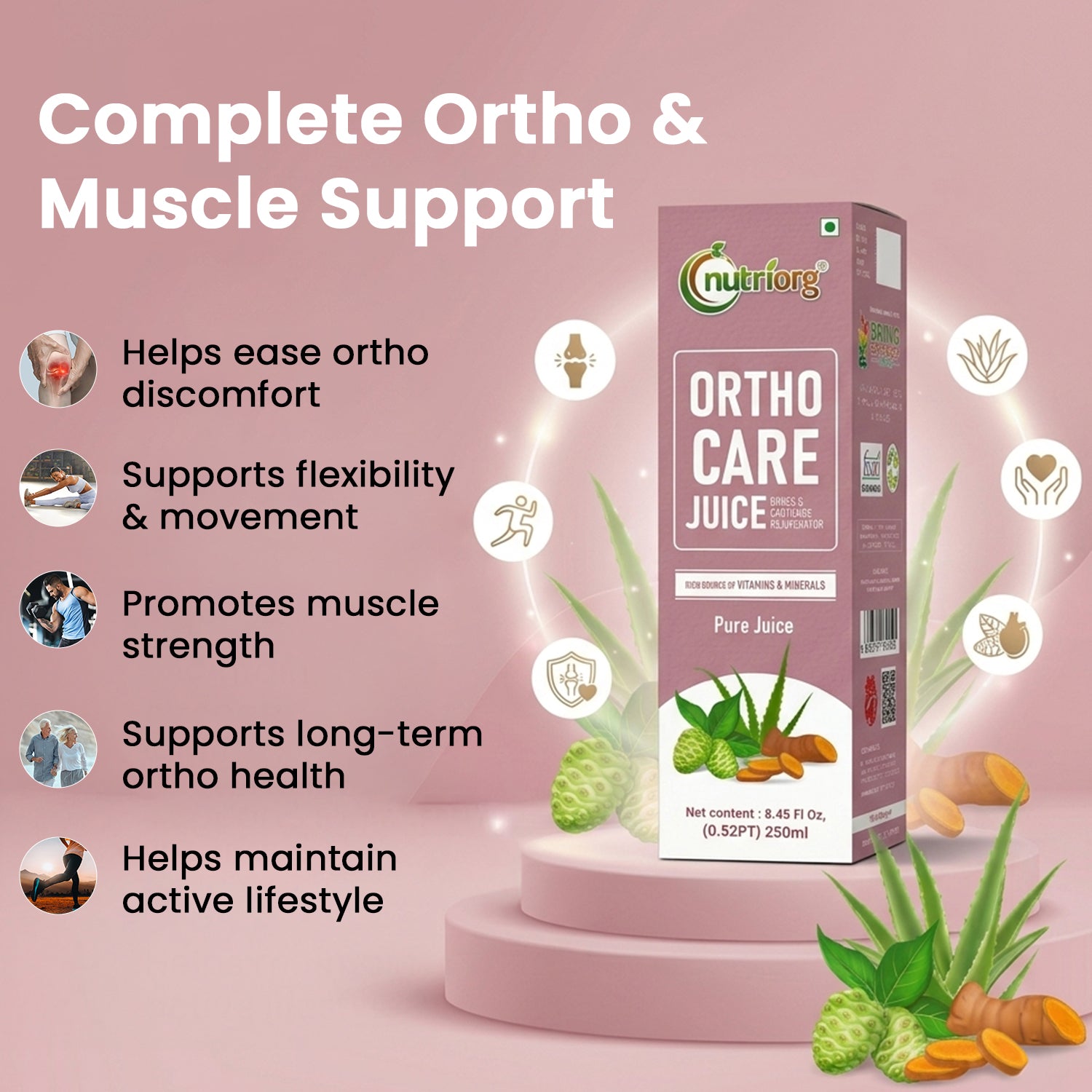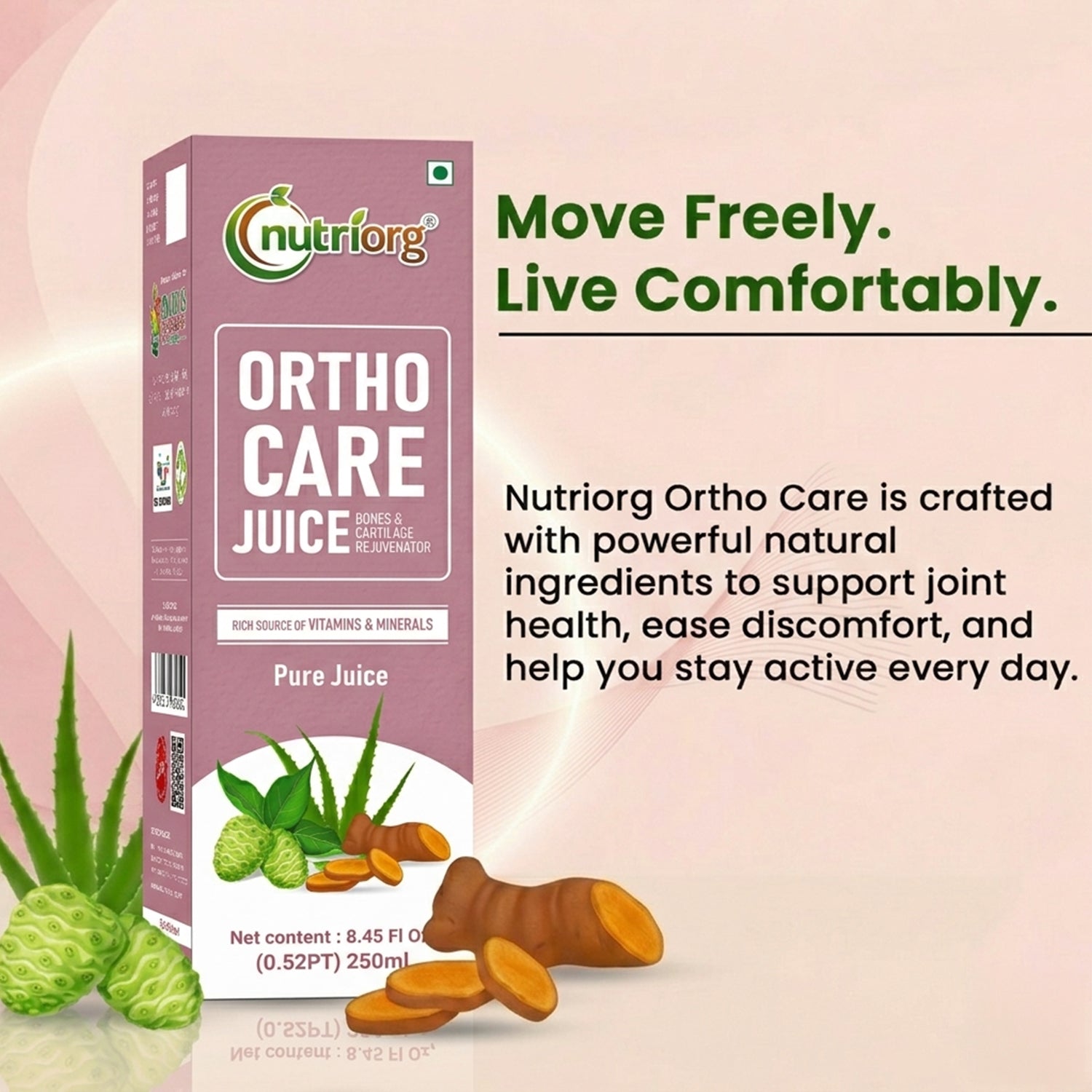 Discover natural relief and support for your joints with Nutriorg Ortho Care Juice - your trusted companion for maintaining joint health and flexibility, now in a travel-friendly size!
