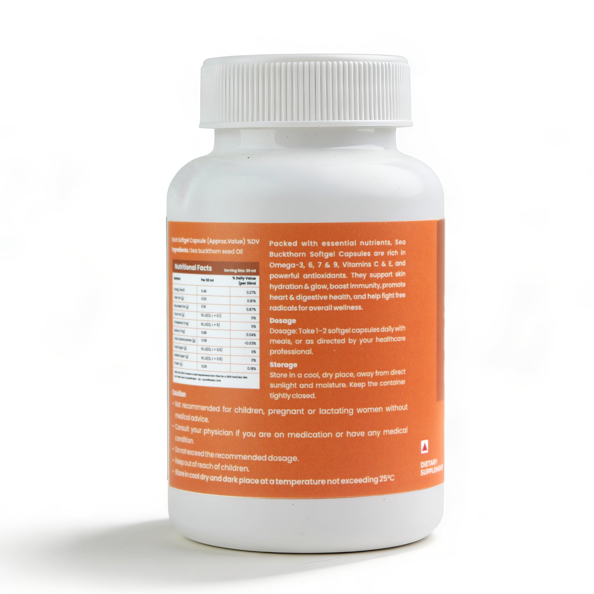Nutriorg Sea Buckthorn Capsules are formulated using high-quality Sea Buckthorn Berry extract, known as one of nature’s most nutrient-dense superfruits. These capsules are a natural source of essential Vitamins A, C, E & K, along with Omega-3, 6, 7 and 9 fatty acids, including the rare Omega-7.