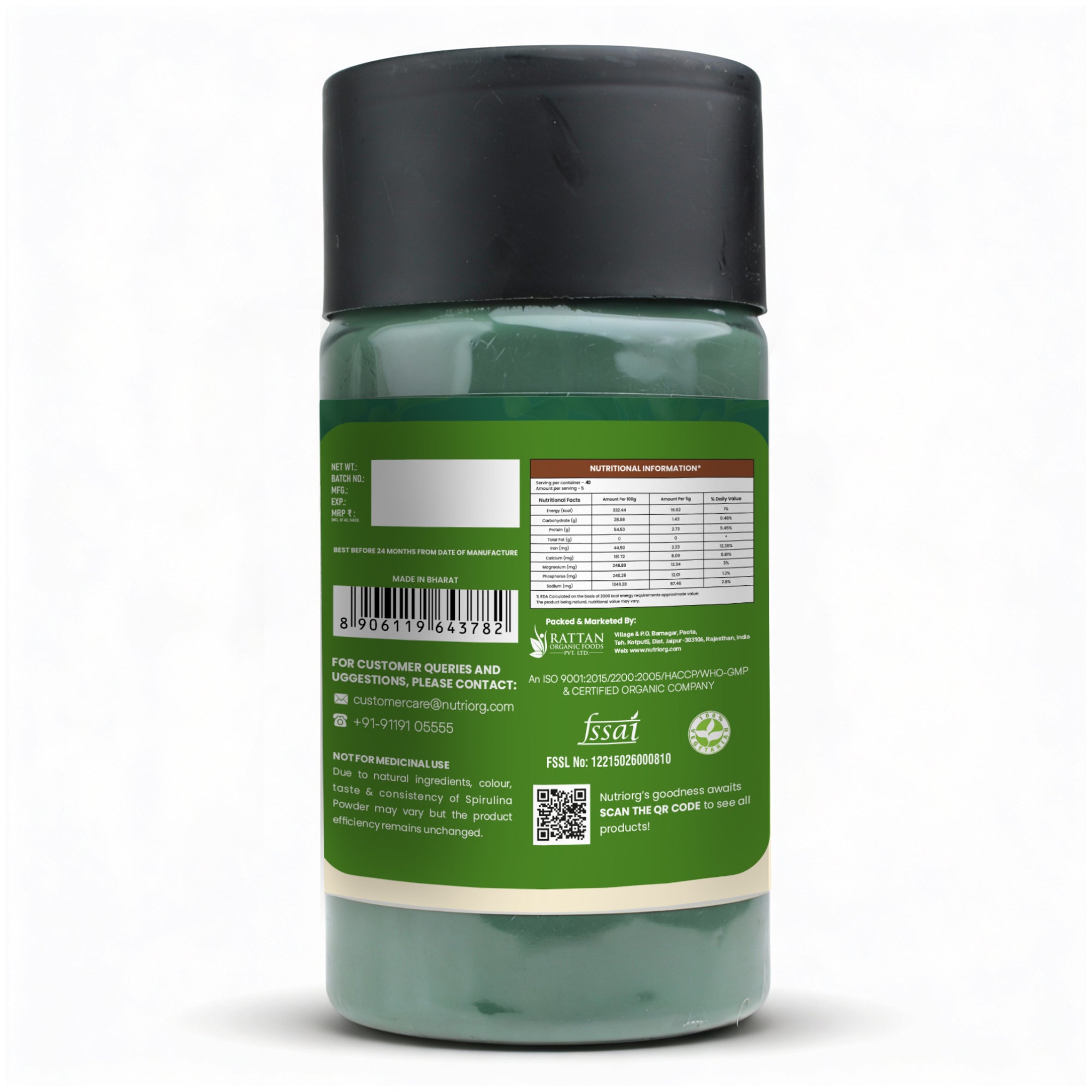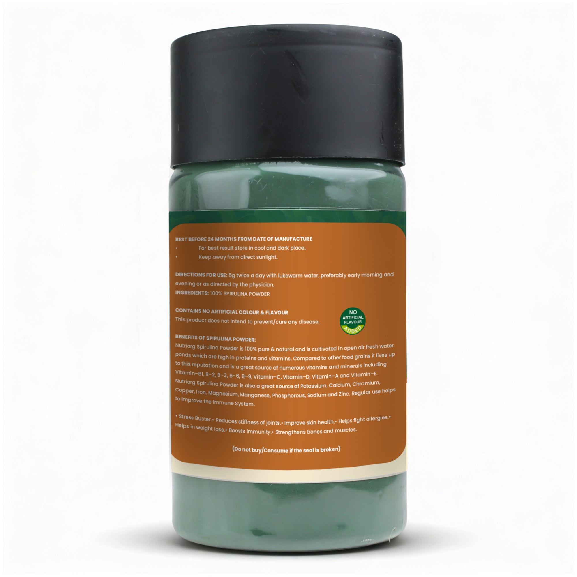 - Nutriorg Spirulina Powder is high in protein and vitamins due to which it is believed to be the most nutrient-dense food on the planet.