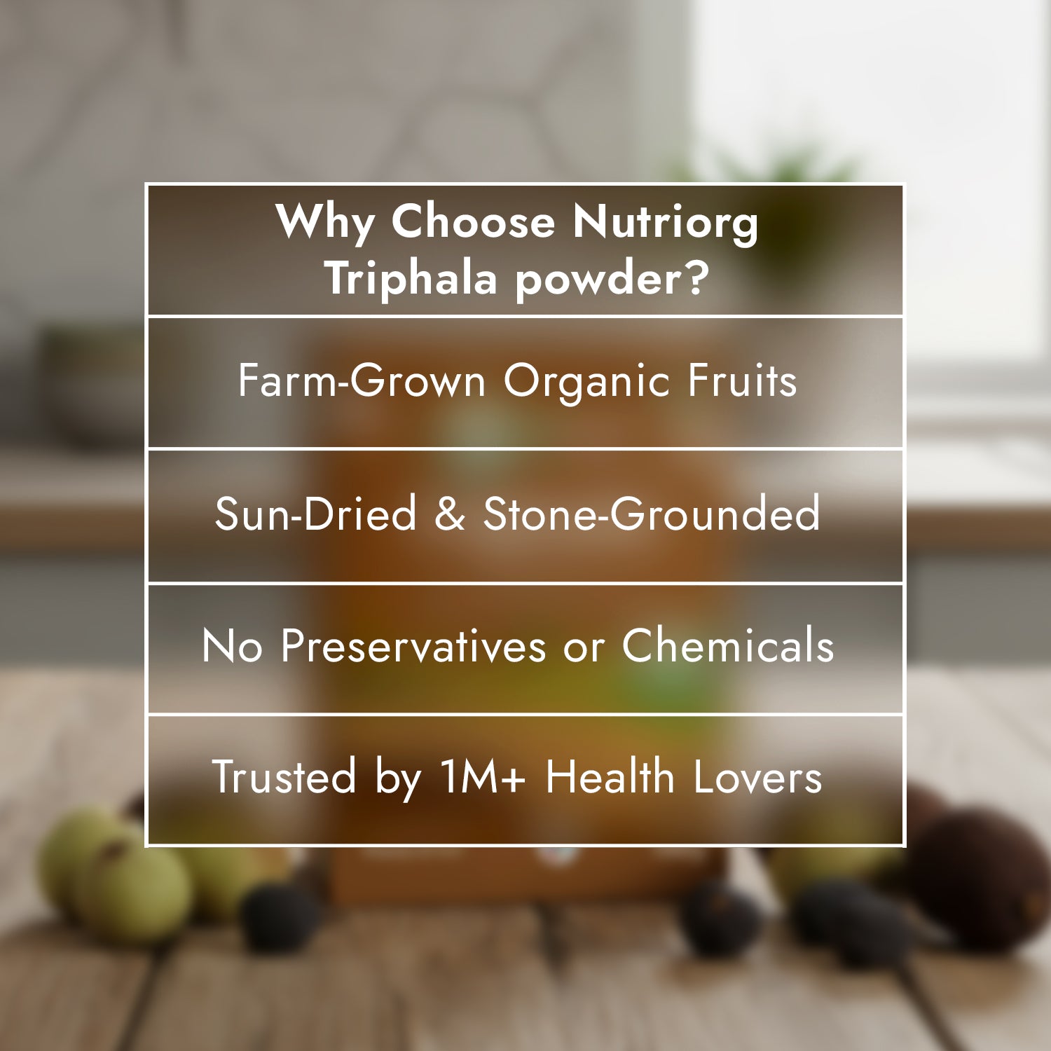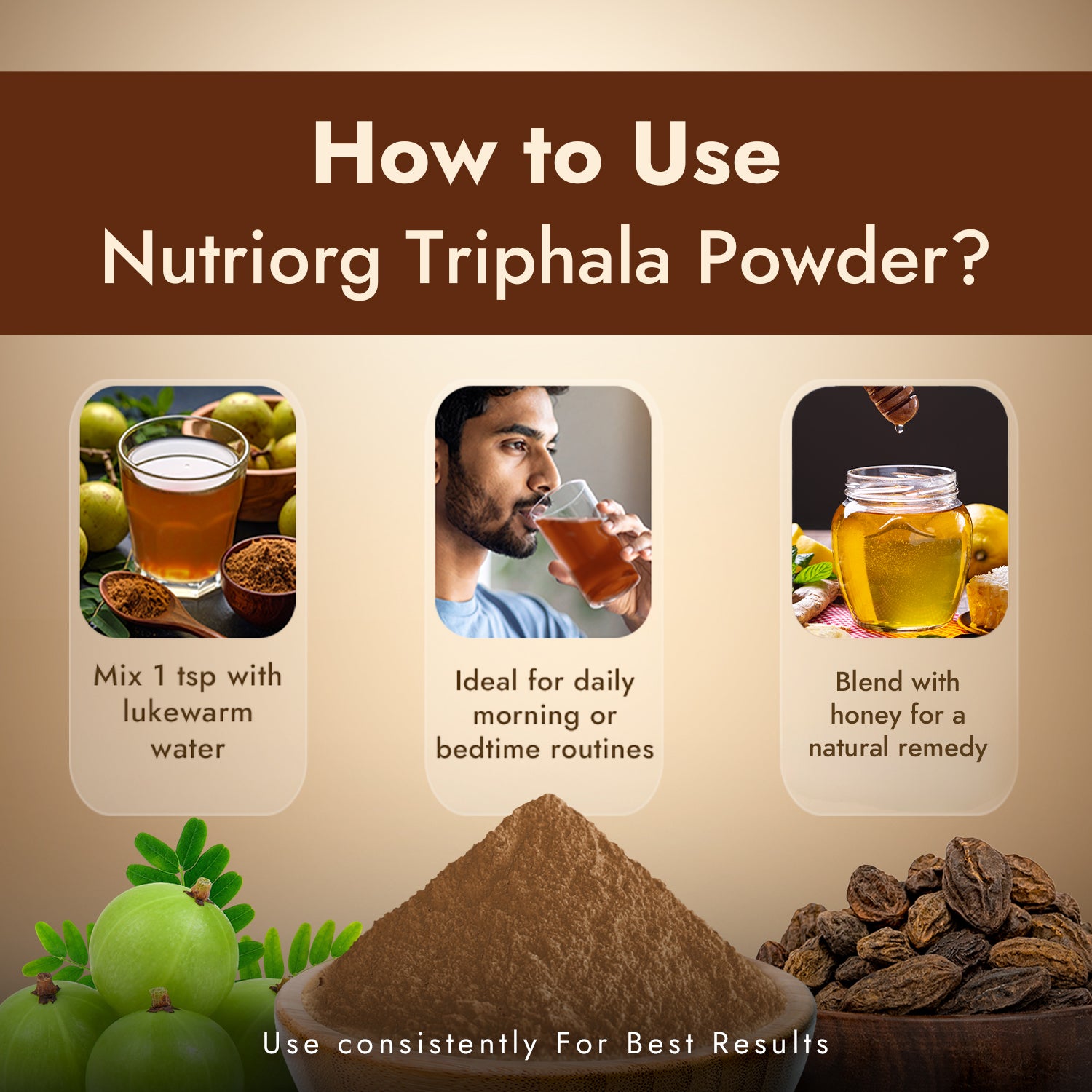 • Nutriorg gives you the boon of health in its 100% natural Triphala powder with its amazing benefits to your overall health.