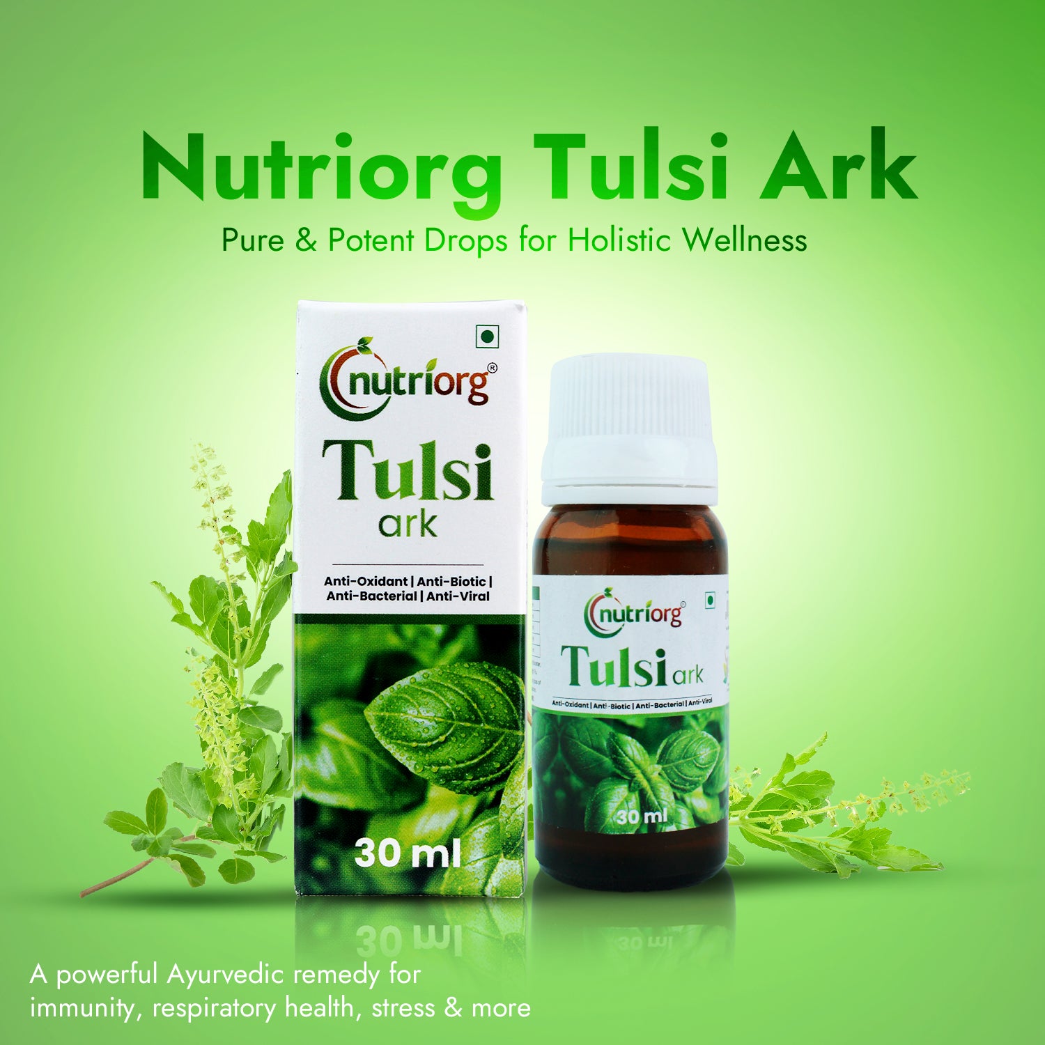 - Nutriorg Tulsi Ark is made from 5 types of Tulsi namely Rama Tulsi, Shama Tulsi, Shwet Tulsi, Vana Tulsi And Krishna Tulsi mixed in a very effective proportion.
