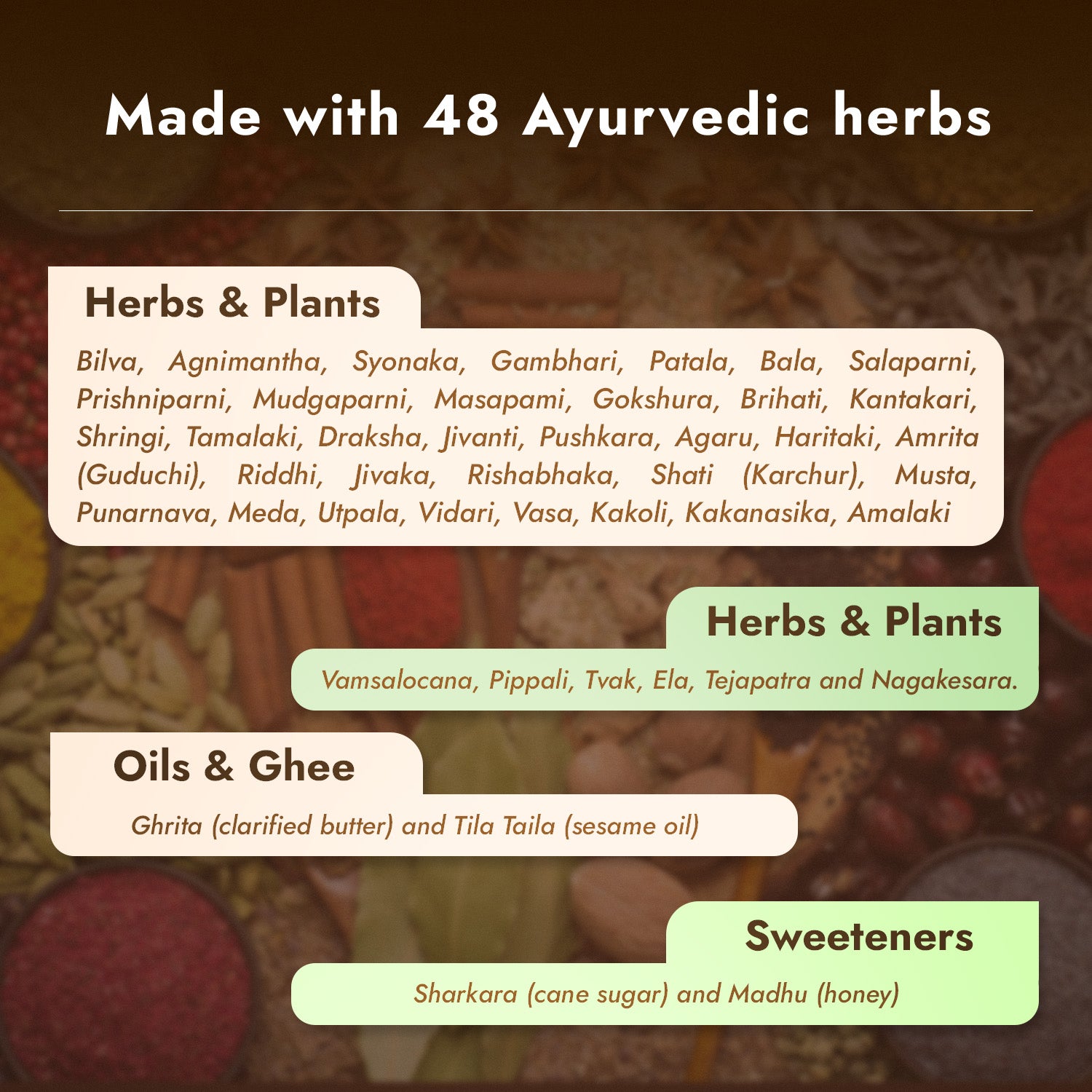 - The ingredients in Chyawanprash promote healthy muscle mass by supporting protein synthesis and the absorption of nutrients.