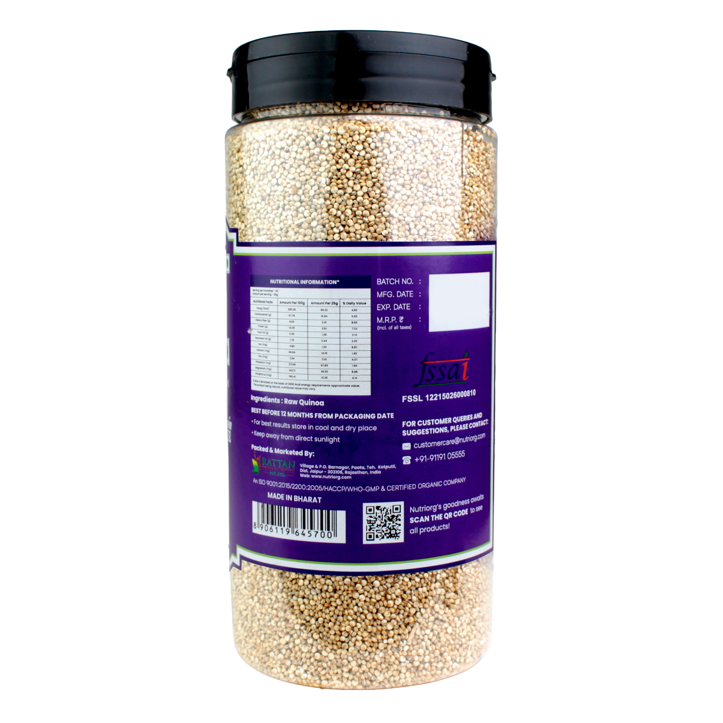The Nutriorg Organic Quinoa is a fantastic Gluten-free food which has an excellent amino acid profile. It contains all nine essential amino acids making it a complete source of protein. Quinoa is therefore an excellent choice for vegans who struggle for enough protein in their diet. Since it is gluten-free, it can be used by individuals who suffer from gluten intolerance. Quinoa contains Iron which helps keep red blood cells healthy and is the basis of hemoglobin formation. It has lysine, which is mainly essential for tissue growth and repair.