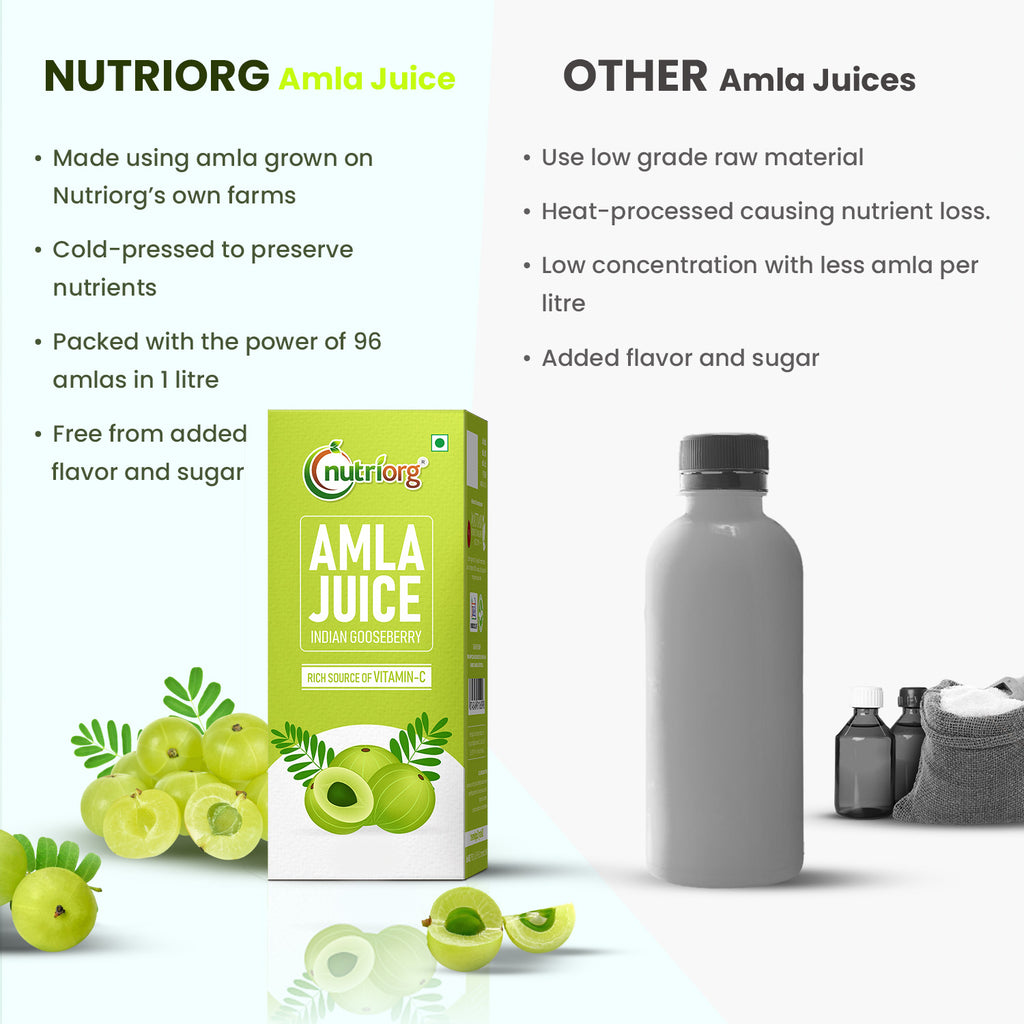 The powerful combination of Amla & Noni is a health-boosting, immune-boosting and anti-aging supplement that rejuvenates your body. The Nutriorg Amla Juice is made from 100% Organic and certified organic Amla crops cultivated on our own organic farms situated in Rajasthan. Nutriorg's Noni Juice is made from 100% Pure Noni fruit extract, which goes through a rigorous process of filtration to ensure its quality before bottling. Both these products are free from added preservatives, colouring agents and other artificial additives and are therefore safe for consumption by all age groups.